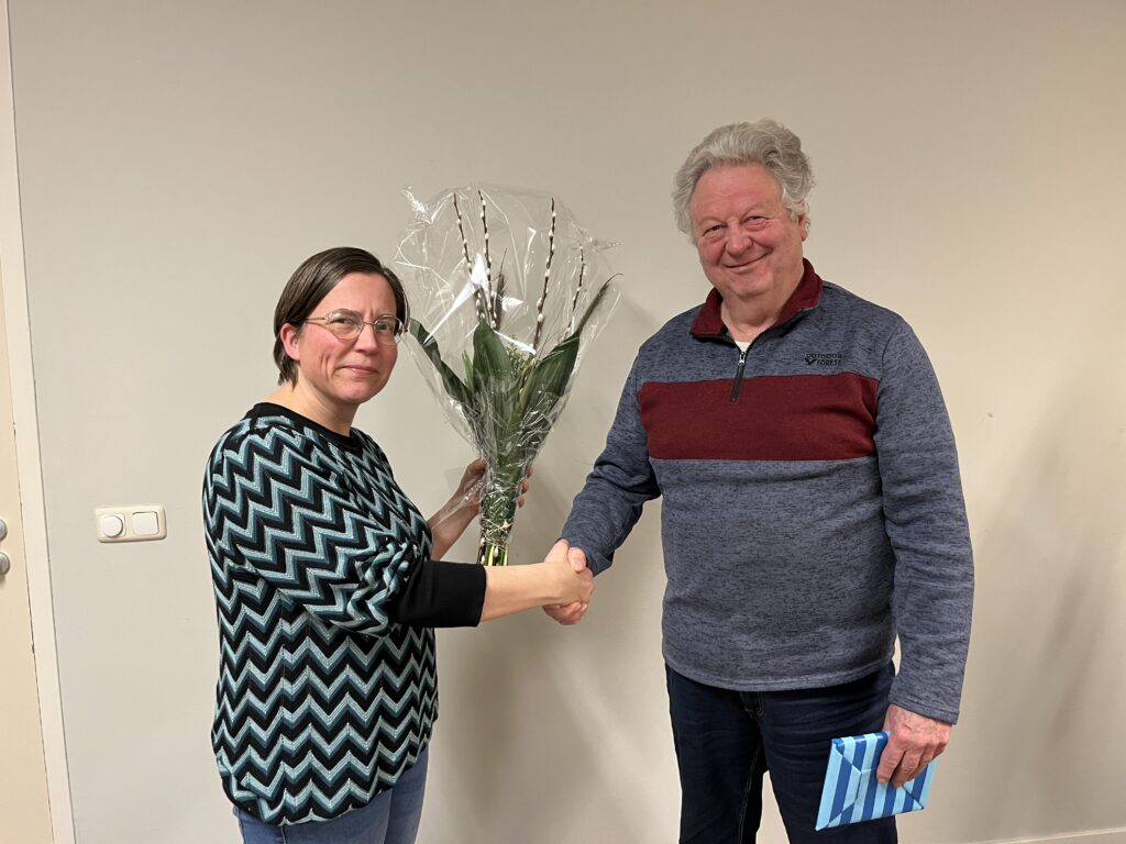 Carla zat sinds 2018 in het bestuur en Fred zat sinds 2023 in het bestuur. Beide ontvingen een prachtige bos bloemen en wat lekkers uit handen van de voorzitter. Ook werd er door de voorzitter aan aantal dank woorden uitgesproken.